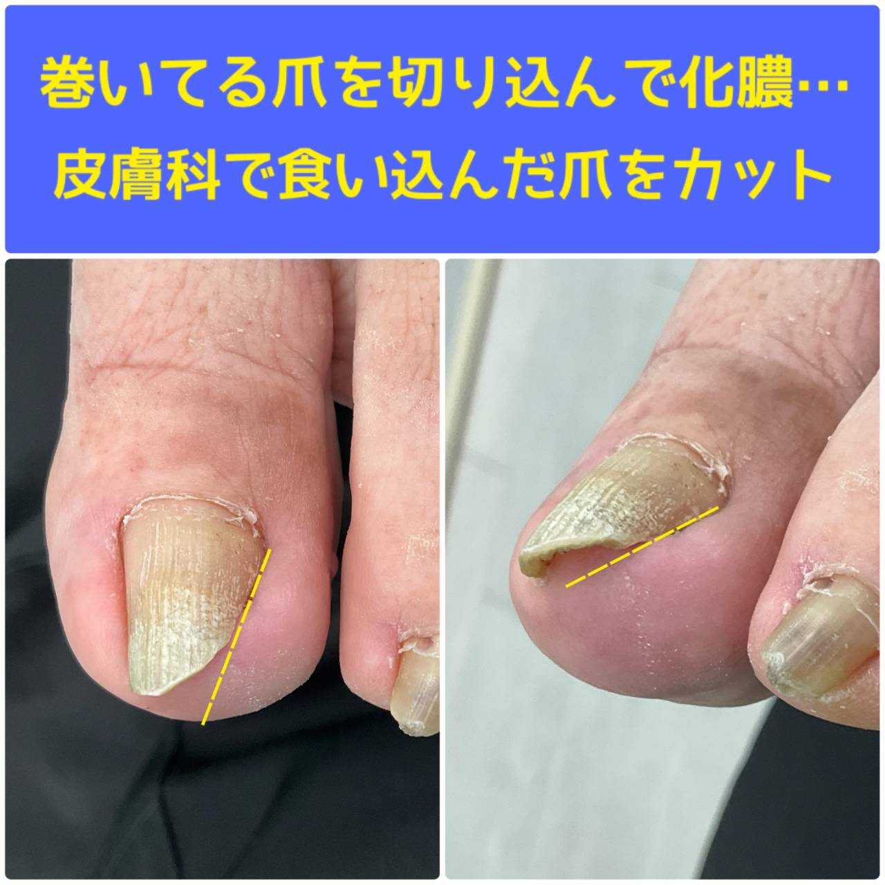 巻き爪が食い込んで化膿してしまい、食い込んだ爪をカットする処置をされて、