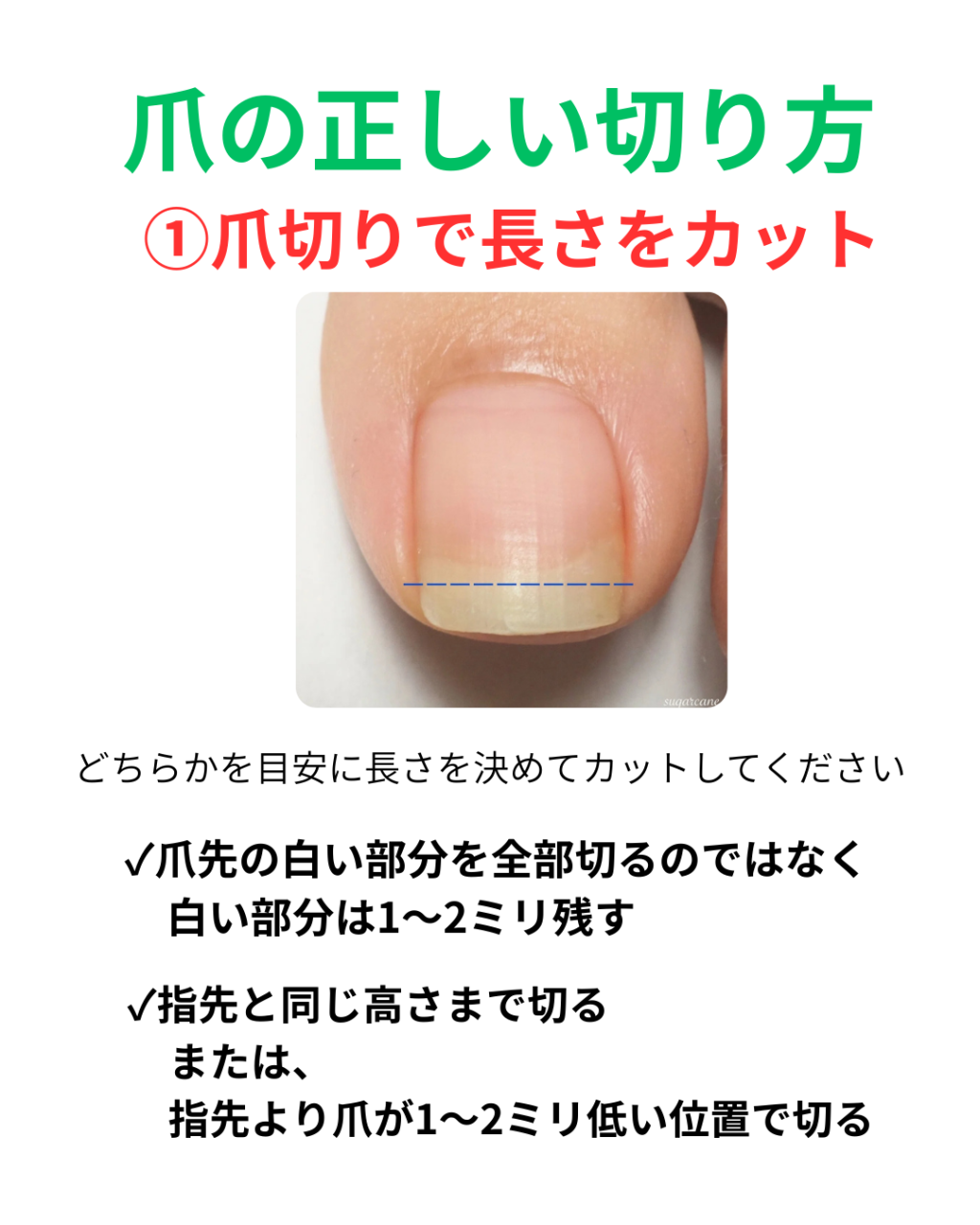 爪先の白い部分を全部切るのは間違えた切り方です。
