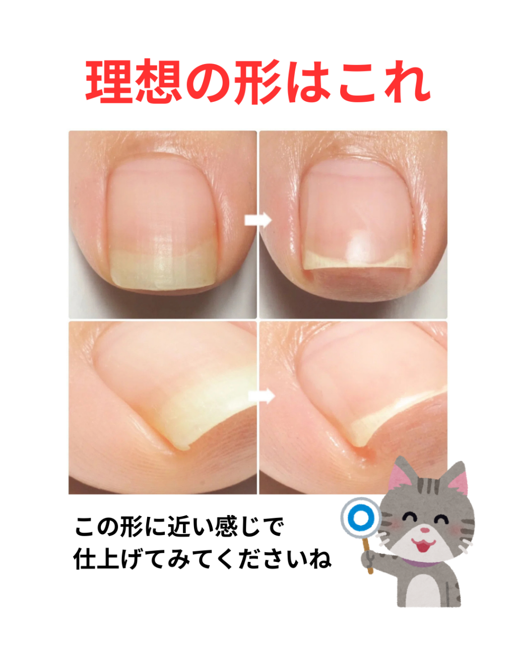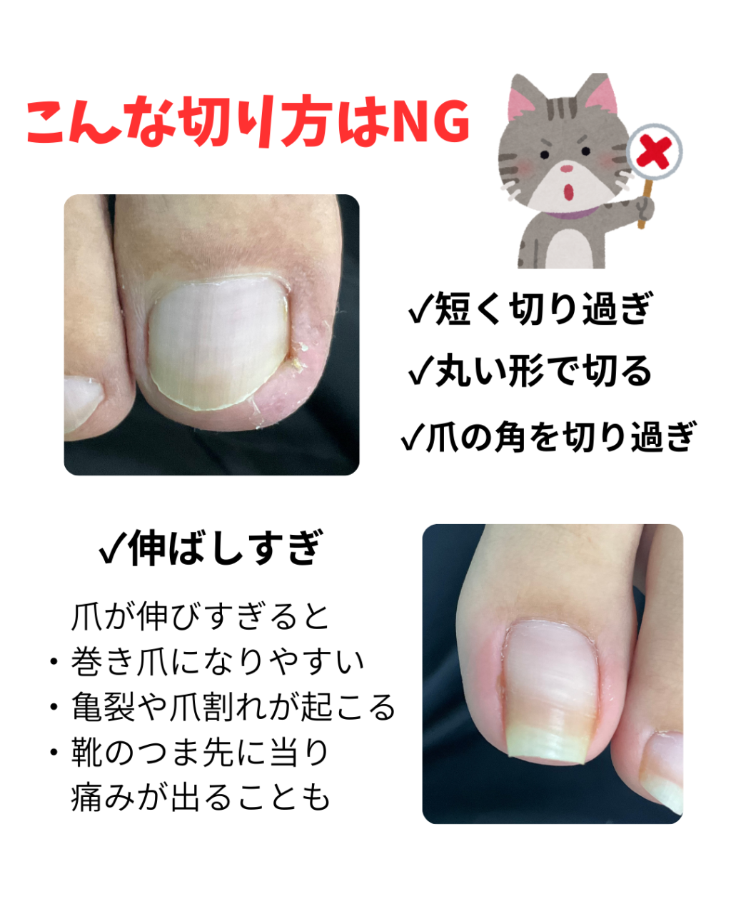 爪を丸い形で、とにかく短めに切るのもNGです。